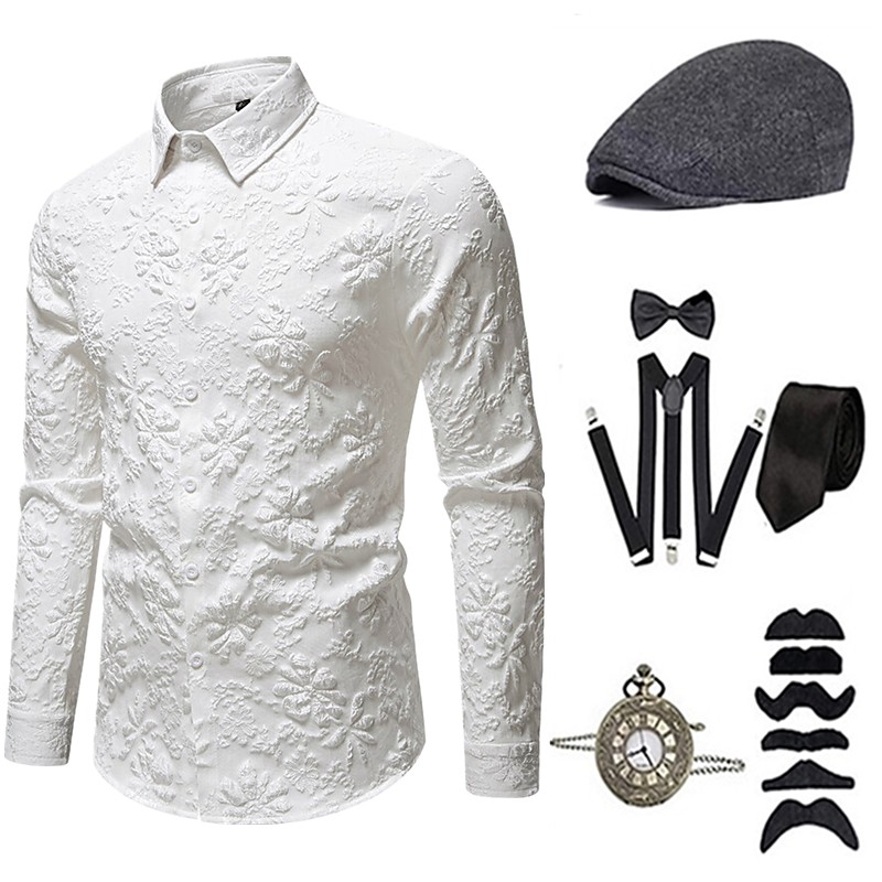 1920s Vintage Inspired The Great Gatsby Party Costume Accesories Set Turndown Fancy Dress Men's Halloween Party Evening Casual Daily Adults' Blouse Hat All Seasons