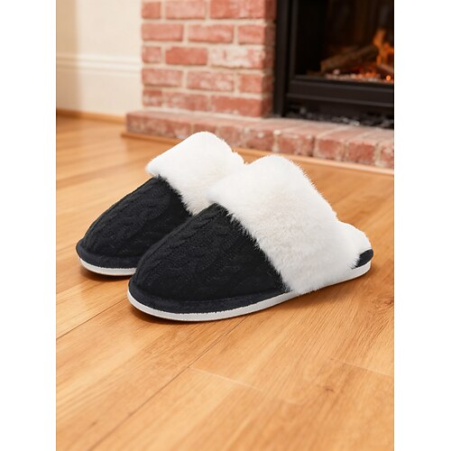 pantofole da casa da donna in maglia rosa con colletto in pelliccia sintetica: calde pantofole da infilare per la camera da letto, la spa e il relax in casa