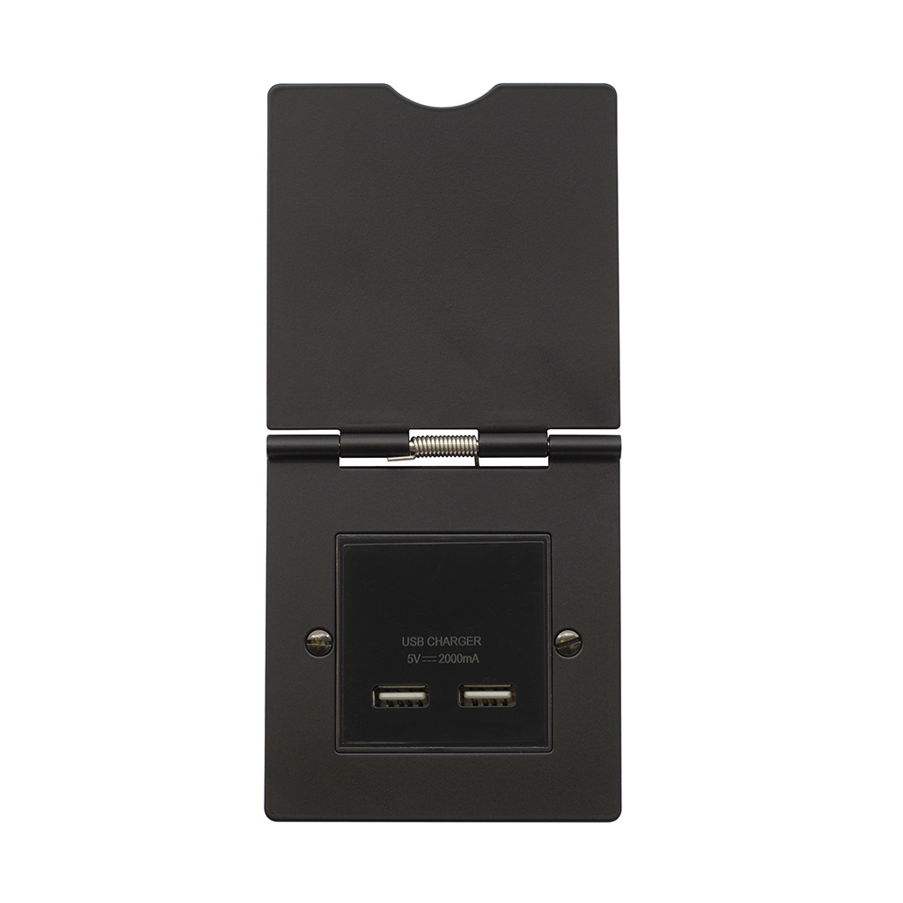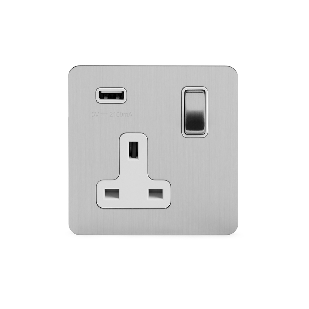 Soho Lighting Brushed Chrome Flat Plate 1 Gang 13A DP Socket with USB-A 2.1A