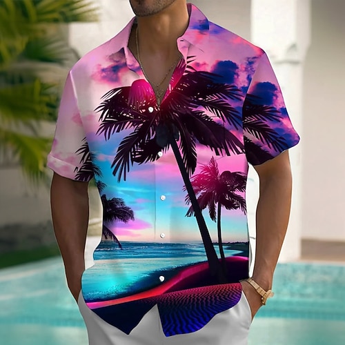 Per uomo Albero di Cocco Tramonto Piante Tropicali Camicia hawaiana estiva Camicia con Bottoni Camicia Aloha Manica Corta Hawaiano Casuale Vacanza Estate Primavera Collo ripiegato Stampa 3D camicie
