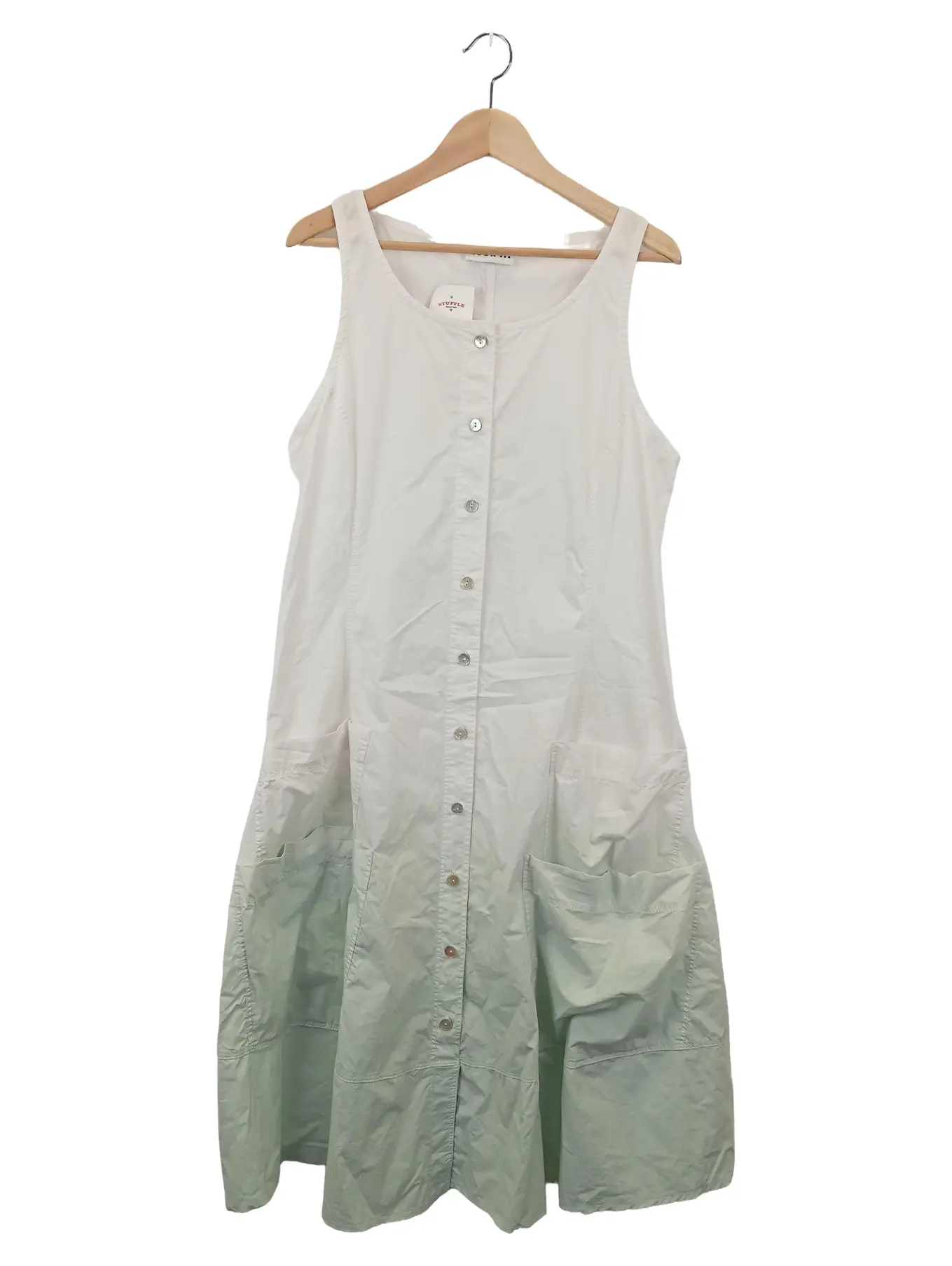 NOOK Damen Trägerkleid L Weiß Grün A-Linie Midi