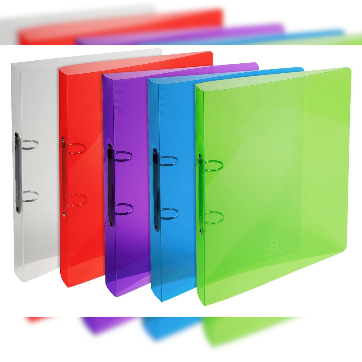 Exacompta 54298E 20x Ringbuch aus PP 700µ mit 2 Ringen 30mm, Rücken 40mm, Crystal, für Format DIN A4 - Farben sortiert