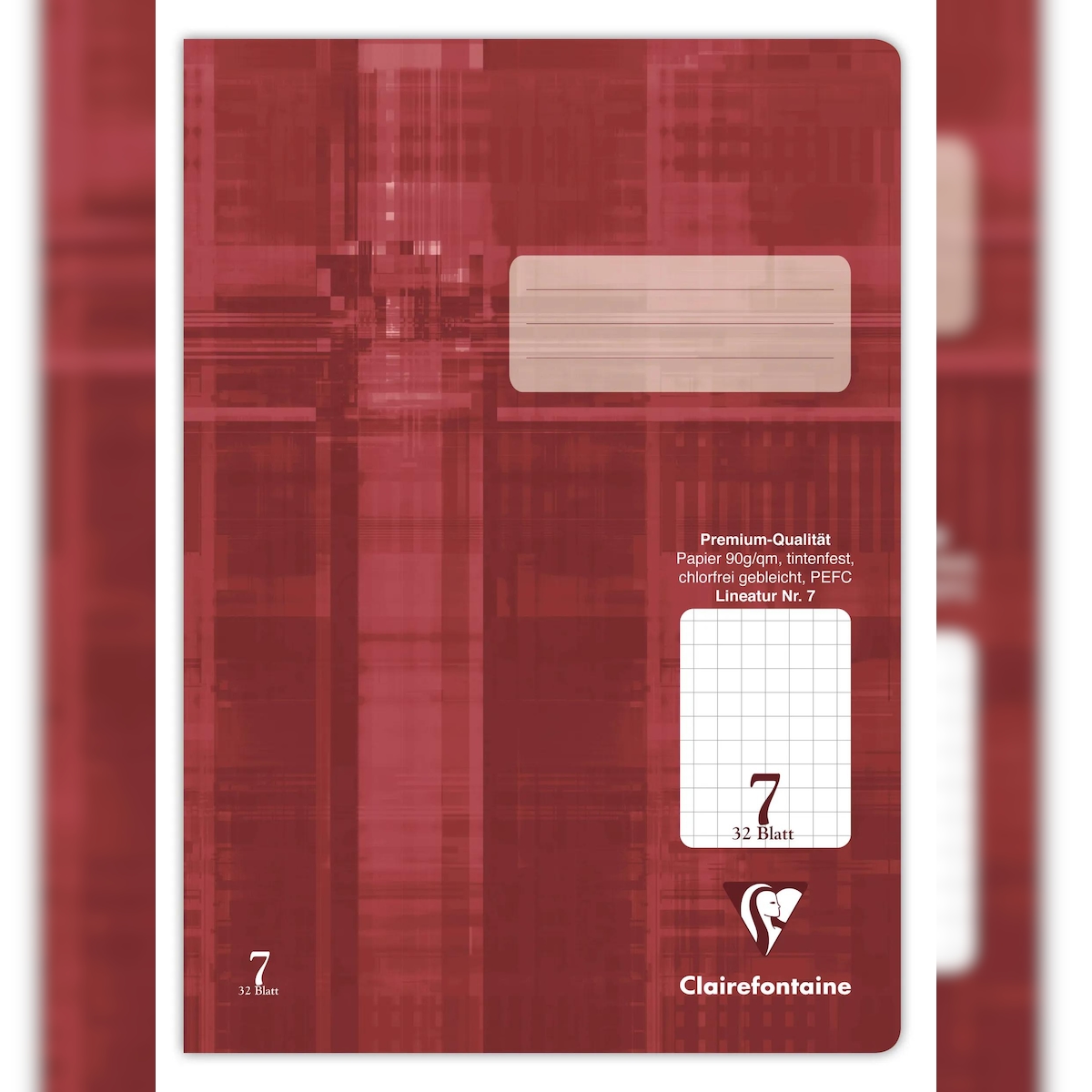 Clairefontaine 25x Schulheft Clairefontaine, DIN A4, 32 Blatt, 90g, Lineatur 7 kariert 7x7mm - Bordeaux 331607C