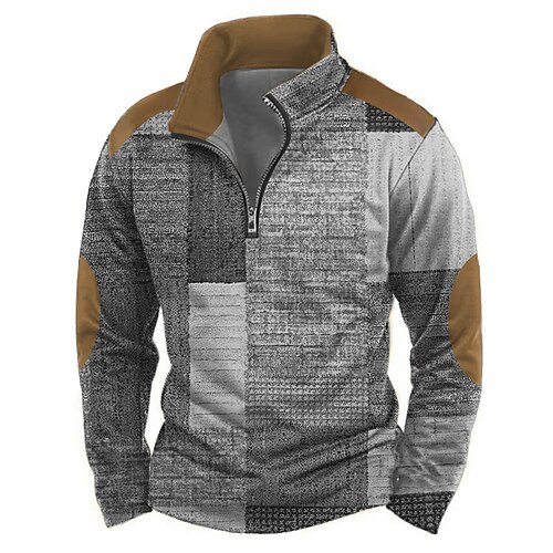 Per uomo Geometrico Astratto Felpa Casual Manica Lunga Collo alla coreana Vacanza Abbigliamento casual alla moda Blu Viola Grigio Cerniera Zip a un quarto Autunno Inverno progettista S M L XL XXL 3XL