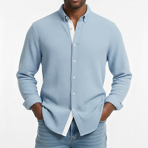 Per uomo Camicia Camicia a nido d'ape Camicia casual Camicia con colletto alla coreana Camicia con Bottoni Blu Rosa Verde Grigio Manica Lunga Semplice Collo alla coreana Casuale Quotidiano Patchwork
