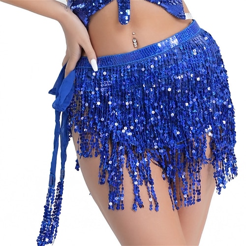 Abbigliamento da danza Samba per il Carnevale di Rio - Gonna da danza del ventre con frange di paillettes e gonna avvolgente scintillante - Costumi con paillettes e monete per performance - Costume
