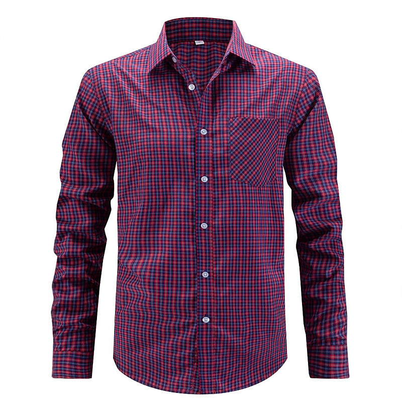 Men's Shirt Dress Shirt Button Up Shirt Plaid Wedding Daily Red Blue Long Sleeve Turndown Spring Fall Clothing Apparel Front Pocket