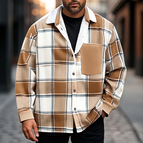 Per uomo Giacca-camicia Giacca camicia Giacca invernale Plaid Vacanza Abbigliamento quotidiano Nero Cachi Manica Lunga Bavero Autunno Inverno Abbigliamento Tasca