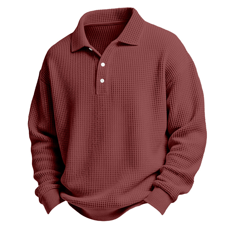 Men's Waffle Polo Shirts Textured Casual Holiday Lapel Long Sleeve Cool Plain Classic Style Fall Spring Fall All Seasons Regular Fit White Light Green Light Blue Red Navy Blue Purple Waffle Polo