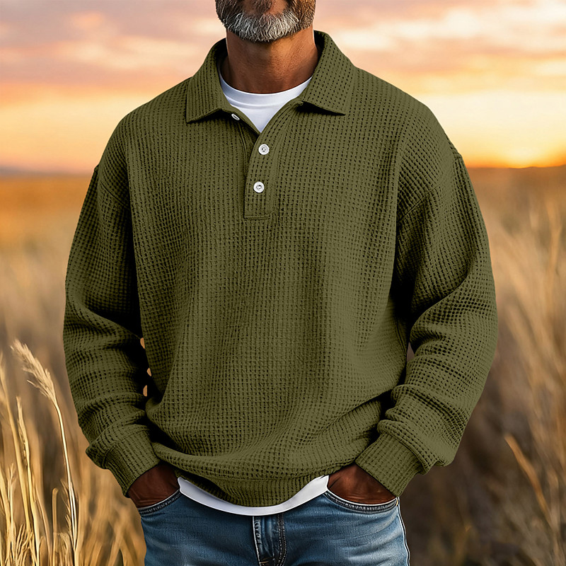 Men's Waffle Polo Shirts Textured Casual Vacation Turndown Long Sleeve Fashion Solid Color Plain Buttons Plain Fall Spring Fall Regular Fit Black Light Green Green Light Blue Purple Dark Blue