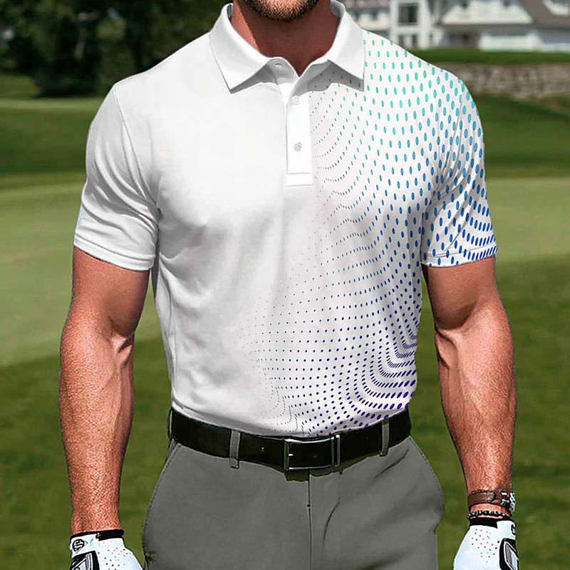 Men's Geometic Golf Sports Polo Shirts Short Sleeve Polo Shirts Lapel Casual Athleisure 3D Print Buttons Summer Blue Light Green Red