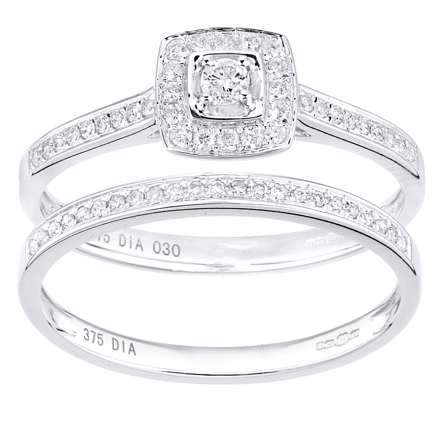 Diamant L'eternel Womens 9 ct White Gold Engagement Ring With CZ Stones - Size P | Diamant L'eternel Sale | Discount Designer Brands