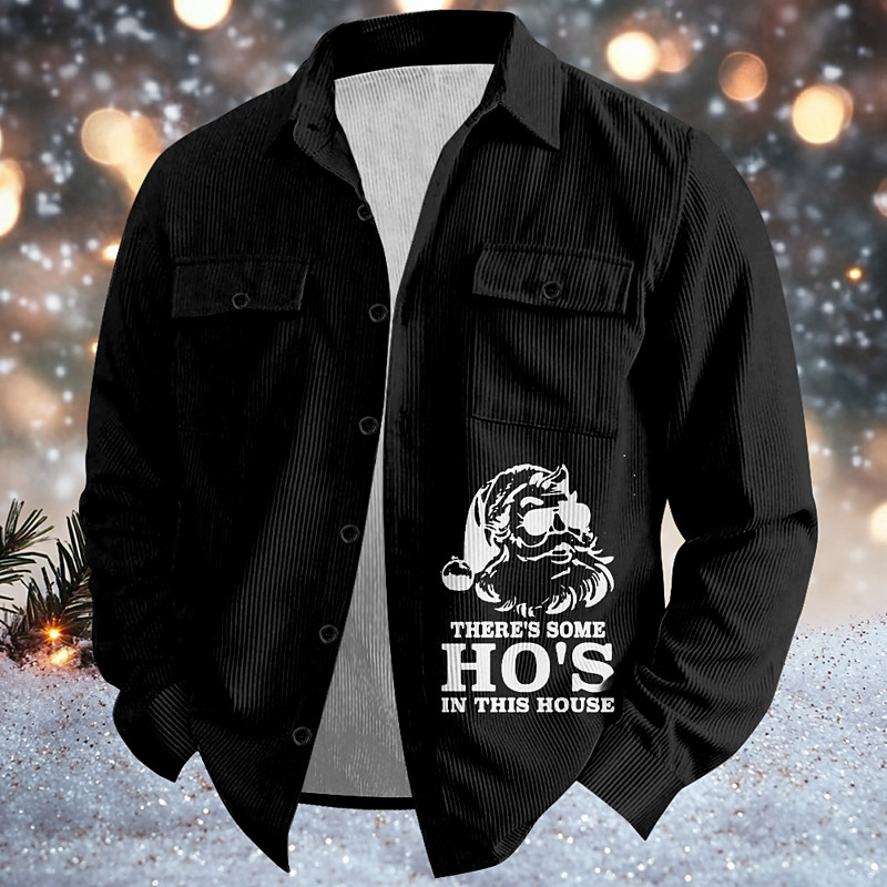 Christmas Men's Santa Claus Corduroy Shirt Shirt Jacket Long Sleeve Vintage Casual Outdoor Event / Party Dailywear Fall Winter Turndown Collared Shirts Button 3D Print 2 Pockets 1pc Violet Black