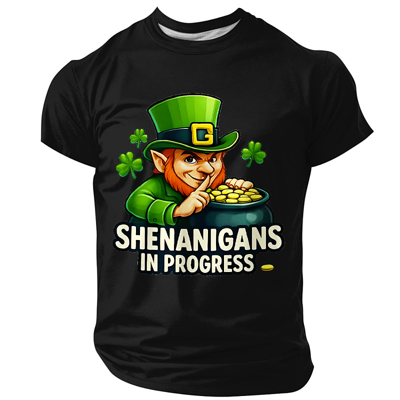 St Patricks Day Shenanigans In Progress T Shirt Funny Leprechaun Pot Of Gold Graphic Tee Men Irish Lucky Shamrock Green Holiday Party Top Clothing Apparel S M L XL XXL XXXL