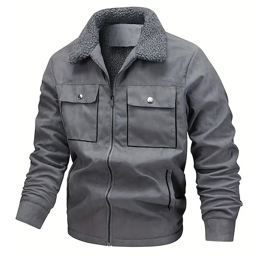 Per uomo Giacca in finta pelle scamosciata Giacca Sherpa Giacca in Camoscio Marrone Casuale Quotidiano Calore Termico Tasca Autunno Inverno Attivo Vintage Regolare Nero Caffè Grigio Giacca