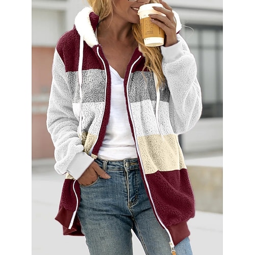 Per donna Giacca in Pile Giacca Sherpa Giacca con Cappuccio Confortevole Traspirante Cerniera Tasca Casual A righe Casuale Vacanza Streetwear Abbigliamento quotidiano Cerniera Regolare Con Cappuccio