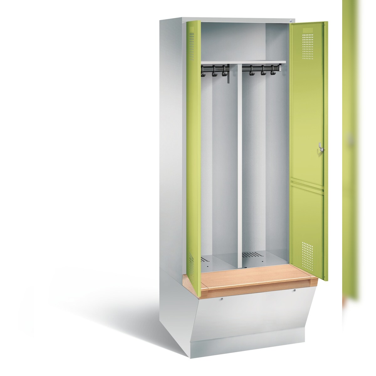 C+P Spind Classic PLUS, Buche untergebaute Sitzbank 1 Abteil, HxBxT 212x40x82cm, Sicherheitsdrehriegel, Hellgrau/Clowngrün von PROREGAL