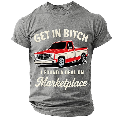 Herren-T-Shirt „Get in bitch I found a deal on Marketplace" – Vintage roter Pickup-Truck, witziger Humor, sarkastischer Retro-Aufdruck, Kurzarm, Grafik, Geschenk für Auto-Fans, Designer-Kleidung,