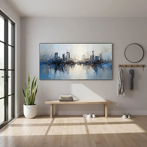 arte murale astratta paesaggio urbano decorazione murale tela pittura blu colorato tema città dipinti opere d'arte moderna per soggiorno sala da pranzo camera da letto ufficio decorazione
