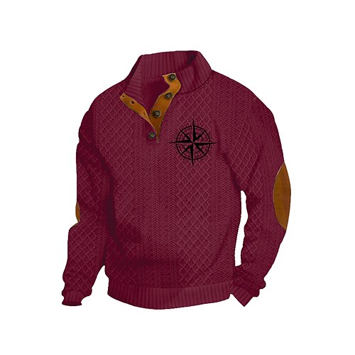 Per uomo Maglia Nero Bianco Vino Verde militare Blu marino Colletto Mao Jacquard Mappa Patchwork Quotidiano Ferie Uscire Poliestere Streetwear Casual Autunno Inverno Abbigliamento Felpe con cappuccio
