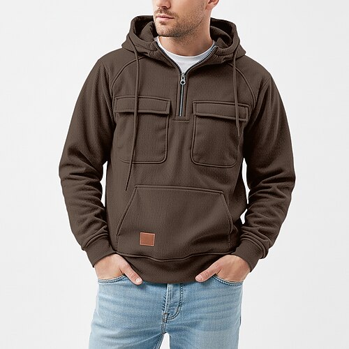 Per uomo Felpa con cappuccio Felpa con cappuccio e zip corta Nero Bianco Vino Blu marino Blu Reale Con Cappuccio Semplice Con zip Tasca Frontale Tattico Sport Outdoor Casuale Streetwear Cool