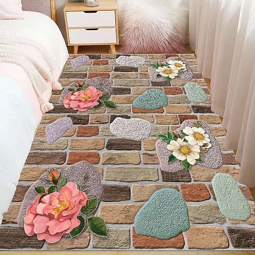 Tappeto da camera da letto morbido, antiscivolo, ad asciugatura rapida, con stampa piatta 2D, motivo floreale 3D, resistente e facile da pulire, arredo decorativo
