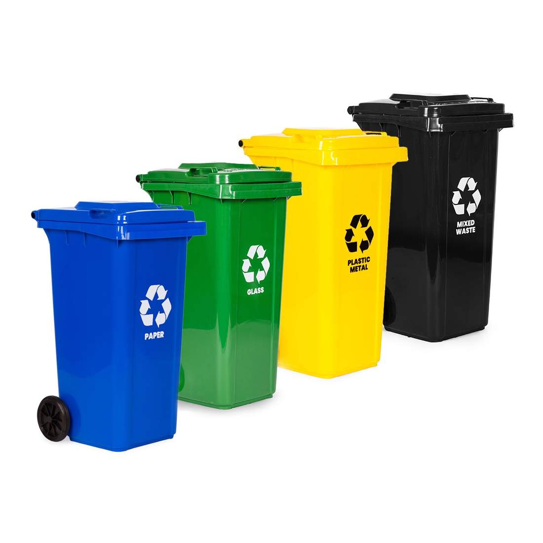 Roskasäiliösetti – 4 x 120 litraa, HDPE, kumipyörät