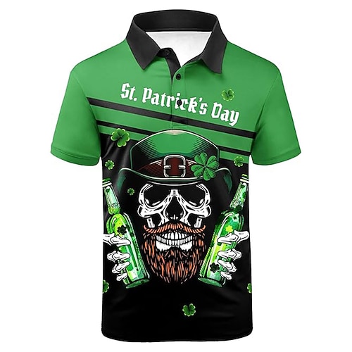 San Patrizio Per uomo Quadrifoglio Birra Maglia da golf Manica Corta Magliette polo Camicie con Colletto Scuro Streetwear Abbigliamento da Esterno Festa della birra Abito da festa Stampa 3D Verde