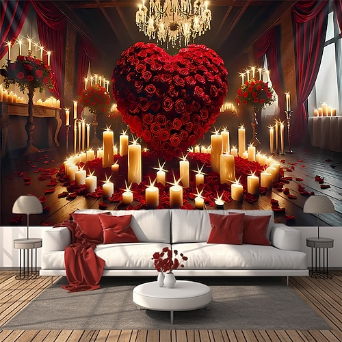 San Valentino arazzo Striscioni Coperta Rose Amore Cuori Carino Romantico 3D Da serata Soggiorno Sfondi di ripresa Decorazione per proposta di matrimonio Arredamento per la casa