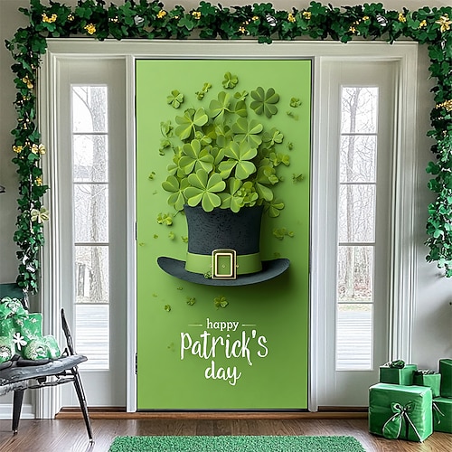 Festa di San Patrizio Poster Copertura della porta Banner per esterni Cappello verde Trifoglio Carino 3D Da serata Dormitorio Stanza per adolescenti Dormitorio universitario Ragazzi Man Cave Frat