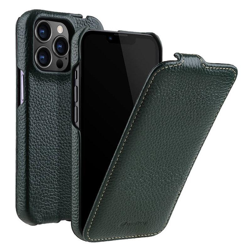 MELKCO iPhone 12 Pro Max Vertikalt Flipfodral Äkta Läder + PC - Grön