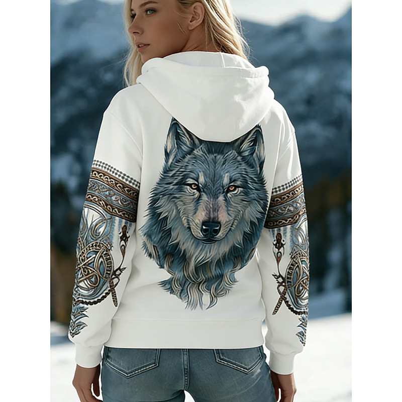 Women's Pullover Hoodie Sweatshirt Graphic Animal Tribal Vintage Casual Long Sleeve Hooded Regular Tops Casual Street Dailywear Print Front Pocket White Spring Winter