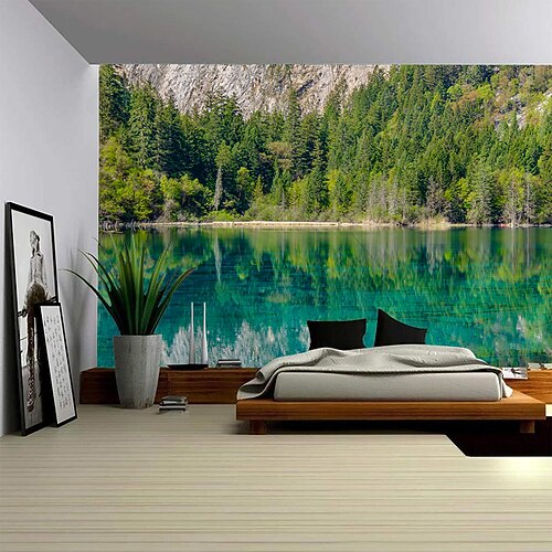 Arazzo moderno con cascata nella foresta, paesaggio tropicale, ideale da appendere alla parete di camera da letto, soggiorno, dormitorio, stanza universitaria, decorazione per la casa, sfondo