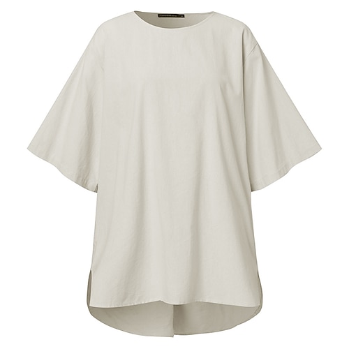 Per donna Camicia Camicie di cotone e lino Blusa Tinta unica Moda Casual Girocollo Quotidiano Streetwear Ricamato Bianco Giallo Rosso Verde Cachi Estate