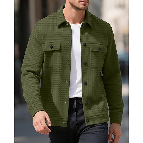 Per uomo Giacca a nido d'ape Giacca Camicia Giacca Casual Vacanza Quotidiano Traspirante Jacquard Tasca Primavera Autunno Semplice Moda Classico Bavero Regolare Nero Bianco Cachi Verde militare