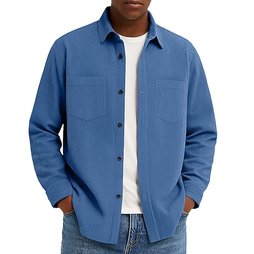 Per uomo Camicia Camicia di Velluto a Coste Camicia con Bottoni Blu Verde militare Beige Manica Lunga Semplice Collo ripiegato Casuale Quotidiano Tasca Abbigliamento Cotone Moda Streetwear Classico