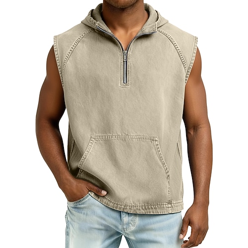 Per uomo Camicia di lino Canotta Canottiera Senza Maniche Con Cappuccio Maglione Estate Semplice Moda Classico Moderno Zip a un quarto Casuale Palestra Streetwear Blu chiaro Nero Rosa Maglietta Top