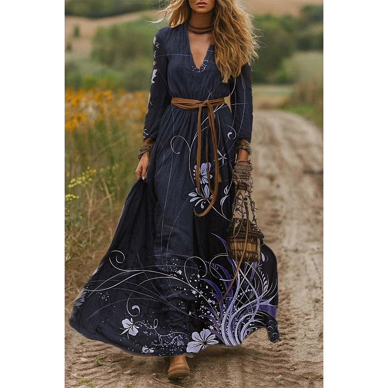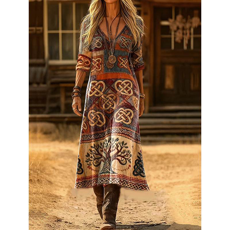 Women's Maxi Dress Sheath Dress Party Casual Boho Daily Date Going out Regular Fit Graphic Geometric Paisley Long Sleeve V Neck Dark Brown Spring Fall Winter Autumn