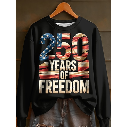 Felpa casual per il 250° Giorno dell'Indipendenza delle Donne Americane grafica maniche lunghe collo rotondo top regolari abbigliamento casual da strada quotidiano nera bianca rossa primavera autunno