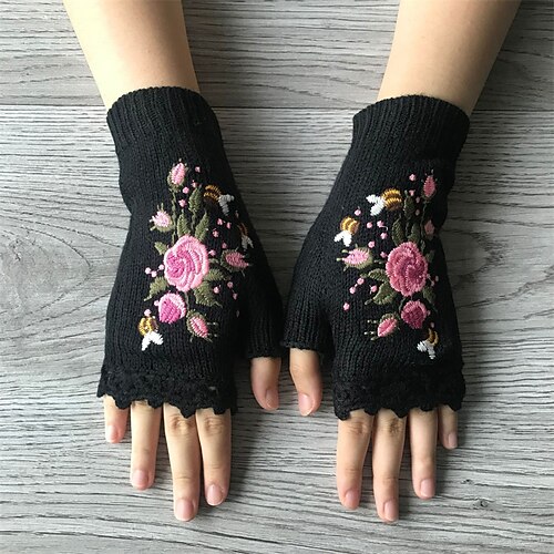 Per donna 1 Paio Mezze dita / Invernali / Guanti lavorati a maglia Streetwear / All'aperto Guanti - Stampa / Fiore