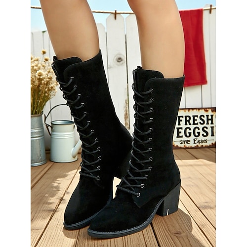 Per donna Stivali Stivali da Cowboy Scarpe in Camoscio Stivali Morbidi Lavoro Quotidiano Stivali al Ginocchio Tacco a Blocco Punta Tonda Vintage Casual Comfort Finta pelle scamosciata Tessuto almond