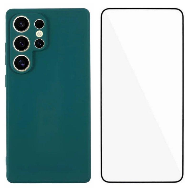 WANLONFENG Mobilskal för Samsung Galaxy S26 Ultra TPU med härdat glas - Armégrön