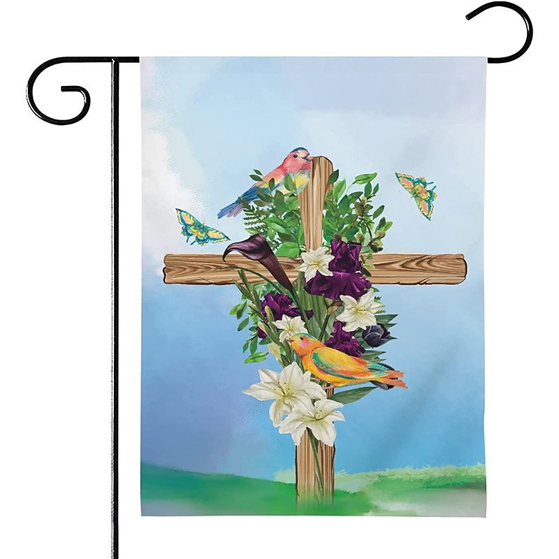Garden Flag 12x18Inch Outdoor Decorations Welcome Garden Patio Flag Cross Jesus Yard Flag Double Sided Holiday Outdoor Flags 1pc