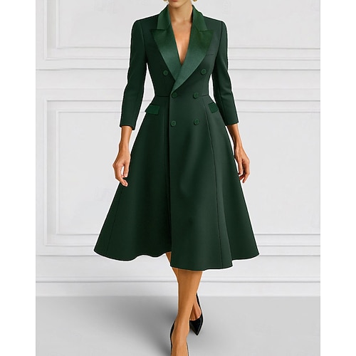 Abito da smoking Linea ad A Formale Ospite di nozze Raso Elegante Minimalista Manica 3/4 Lunghezza Tè Bavero Doppiopetto