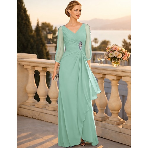 Linea ad A Lunghezza al pavimento Abito da invitata a nozze Abito Formale Abito da sera Abito da cerimonia per signora Manica 3/4 Scollo a V Elegante Ospite di nozze Festa di fidanzamento Chiffon con