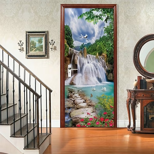3D-Türbanner mit alter Gassentür, Steintreppe, mediterraner Straßenansicht, realistischer Türvorhang für die Haustür, Wanddekoration