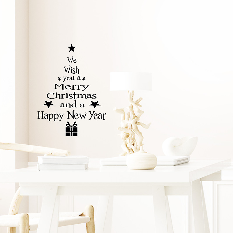 Christmas Wall Sticker Exquisite Carved Christmas Tree And Gift Design Removable Wall Decal For Living Room Bedroom Kids Room Window Decor Holiday Home Decoration Art