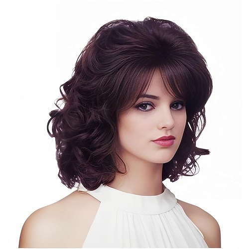 Vintage-Perücken für Damen, blonde Kurzhaarperücke im Stil der 70er und 80er Jahre mit Pony, schulterlange Kunsthaarperücke für Cosplay