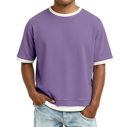 Per uomo Maglietta Camicia 100% cotone lavaggio acido Manica Corta Girocollo Primavera Autunno Autunno Inverno Semplice Vintage Streetwear Casual Blocco di colore Finto due pezzi Lavato Casuale