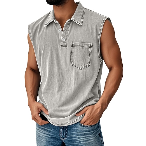 Per uomo Maglietta smanicata Maglietta di cotone Senza Maniche Colletto Polo Estate Primavera Semplice Casual Angosciato Stile Vintage Lavato Casuale Vacanza Streetwear Nero Rosa Viola Maglietta Top